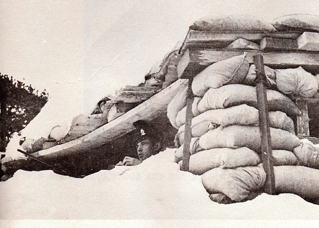| 2 R IRISH guard a key installation at the Retained Site, RAF Troodos on a snowy Mount Olympus, Cyprus 1975. |