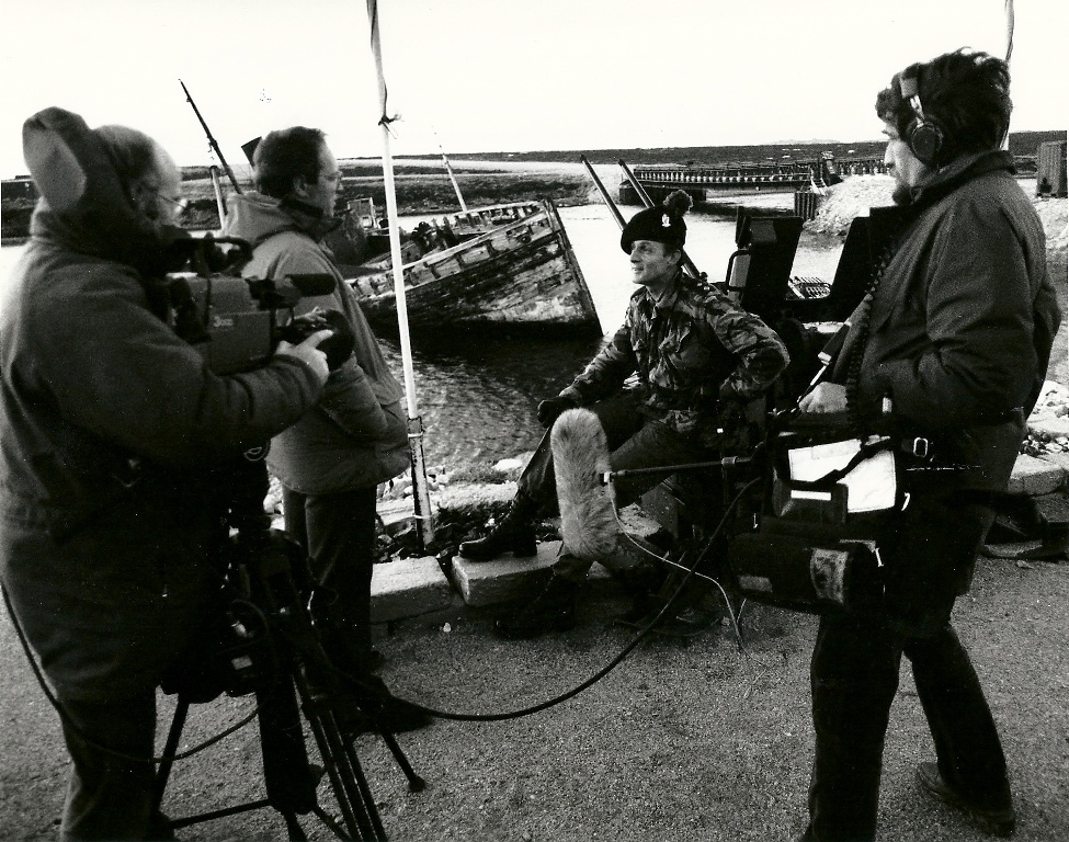 | Lieutenant Colonel W S D Burke, Commanding Officer 2nd Battalion The Royal Irish Rangers being interviewed by the press shortly after arrival in the Falklands. |