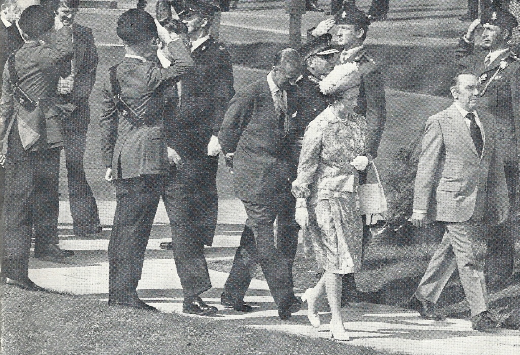 HM The Queen and HRH The Duke of Edinburgh paid a two-day visit to Northern Ireland in August 1977 as part of The Queen's Silver Jubilee celebrations. The Regimental Depot at Ballymena played a large part in supporting her visits to Hillsborough and Coleraine. On arrival at Hillsborough The Queen inspected a Guard of Honour mounted by the Ulster Defence Regiment.