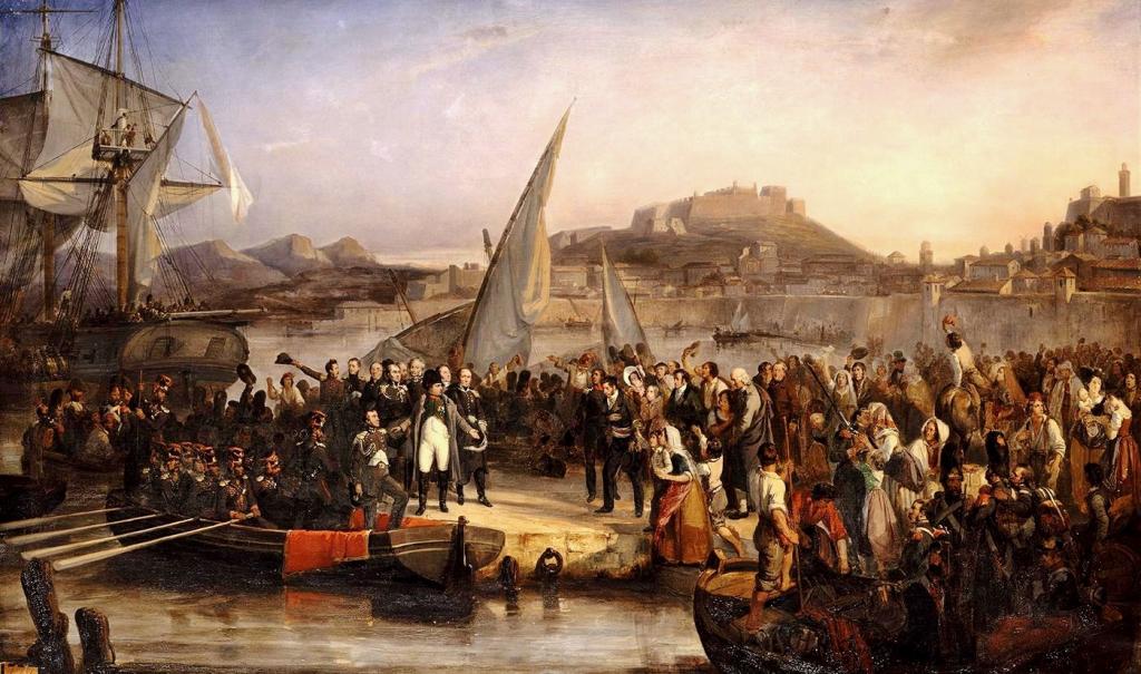| Napoleon leaving Elba, painted by Joseph Beaume in 1836. |