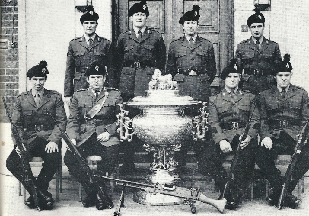 In July 1970, the North Irish Militia Shooting Team won the prestigious China Cup at the Territorial Army Rifle Meeting at Bisley. The Adjutant rashly offered to fill any trophies that the team won at Bisley only to find that the China Cup held 14 gallons of 'congratulatory liquid'.