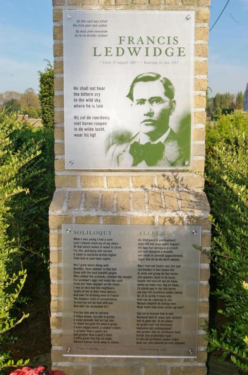 The men were buried at the crossroads but eventually reinterred in Artillery Wood Military Cemetery. Francis Edward Ledwidge is buried in Plot 2, Row B, Grave Number 5.