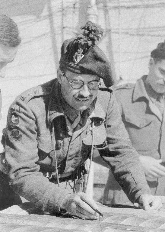 By 1944 he was in command of the 6th Battalion The Royal Inniskilling Fusiliers in Italy. On 15 May, his Battalion was tasked with leading 78th Division in the breakthrough of the German Gustav Line. Although wounded early in the battle, he commanded the Battalion with the utmost skill and inspired his men by examples of personal bravery under fire - he never wore a steel helmet choosing instead to wear a caubeen and to carry a regimental blackthorn stick. He was awarded an immediate DSO. Having recovered from his wounds, he was appointed to command the 2nd Battalion The London Irish Rifles, which was mounted in Kangaroos (armoured personal carriers). In April, his battalion advanced 10,000 yards and captured the bridges over the Fossa Sabbiosola, reaching Scolo Bolognese. Days later, they advanced a further 8,000 yards against stiff opposition.