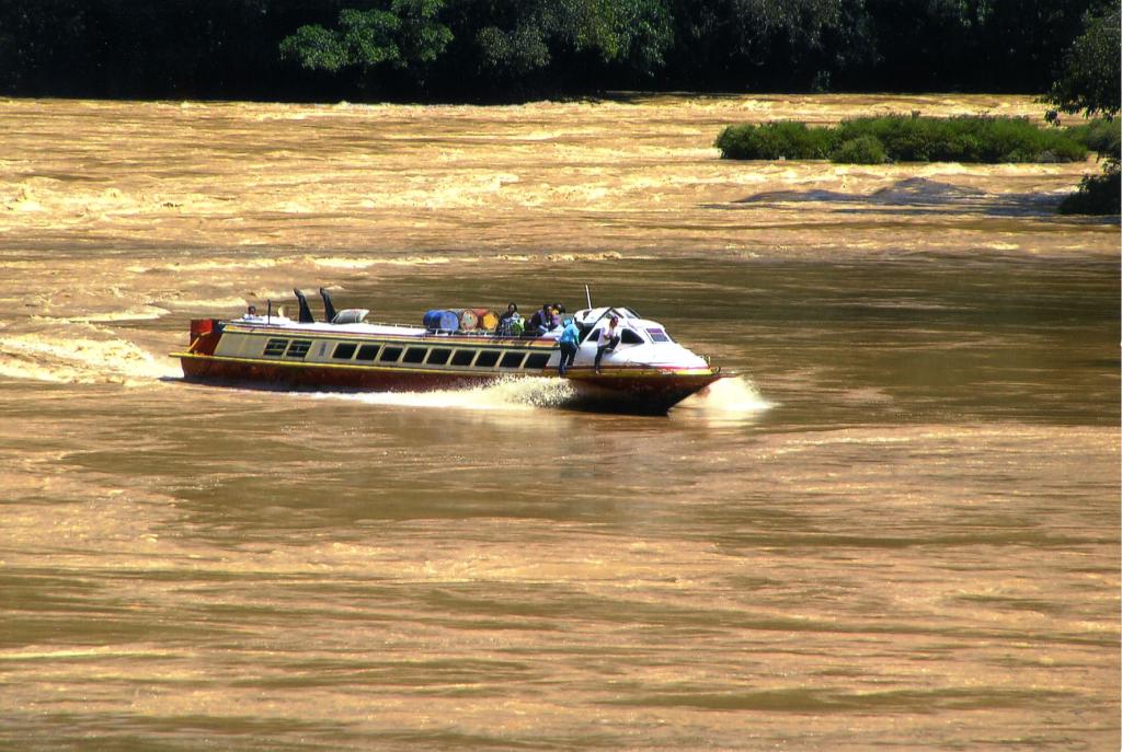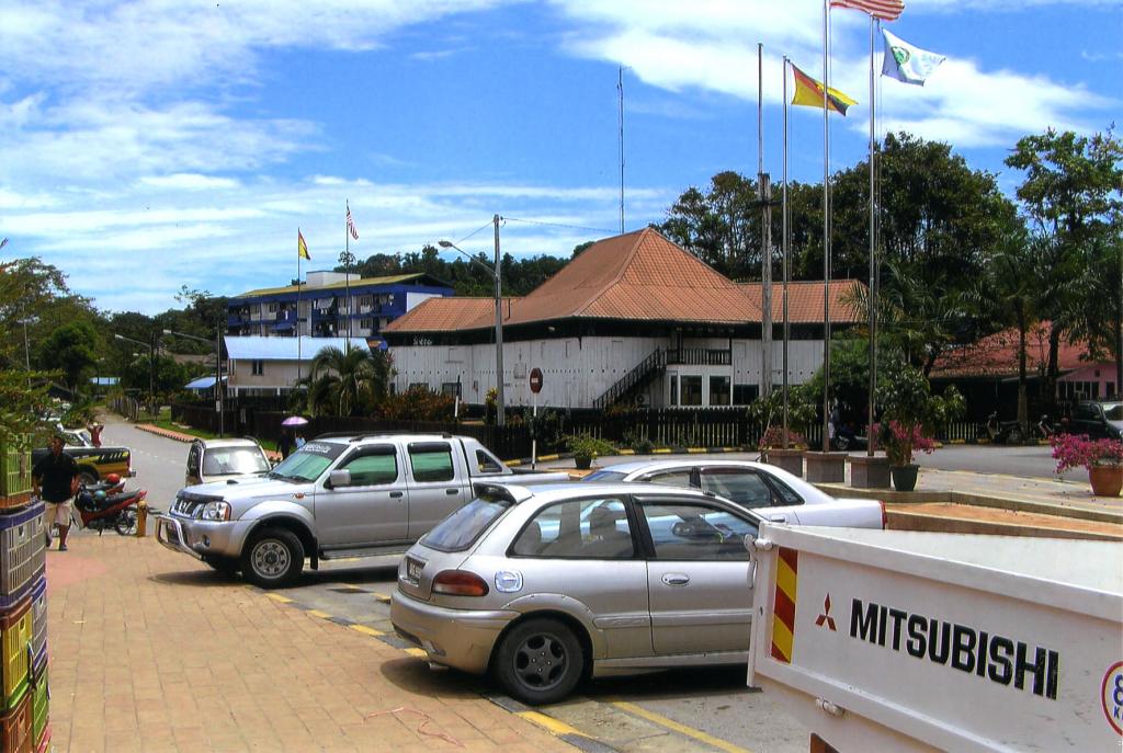 The Battalion initially deployed from Hong Kong into a vast area along much of the Rajang River basin, with Battalion headquarters based in Sibu, an important administrative centre. By the time I arrived in August 1964 the Battalion had moved, but I decided to start my trip there just to see what it looked like. Having flown into Sibu, we took the high speed ferry to Pelagus rapids, and I thought a photograph of the modern river transport, a very high powered diesel speed boat, would make an interesting contrast to the longboats of yesteryear [Photo 1]. I also thought that for those who passed through Kapit it might be interesting to see the contrast between the old police station, which I believe was a company headquarters, and the new District Council office next to it [Photo 2 & 3]. For all the change to modern buildings, one thing that has not changed is that the people wherever we went remain very friendly and genuinely pleased to meet up again with the British who had helped them in Confrontation — not an attitude one meets everywhere in the world.