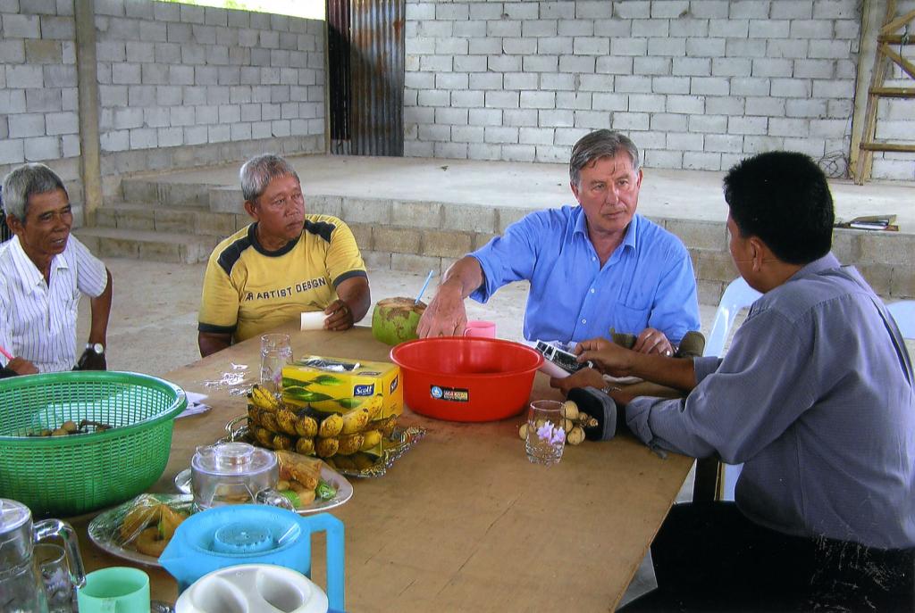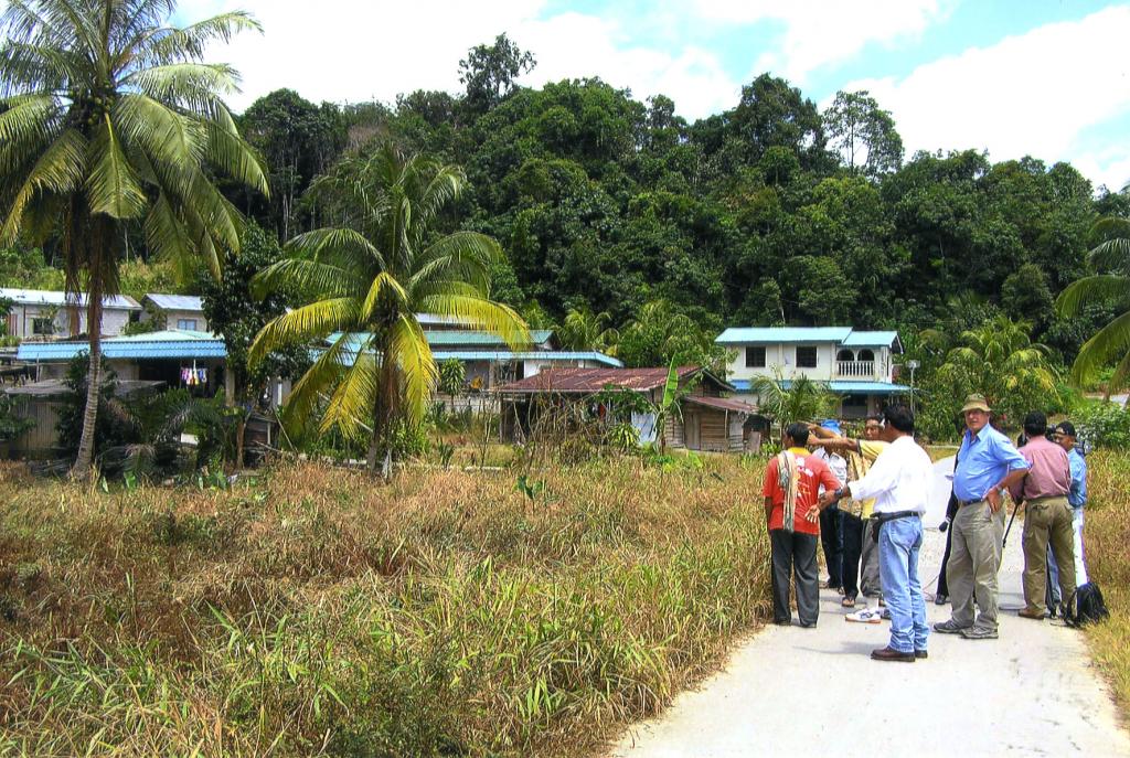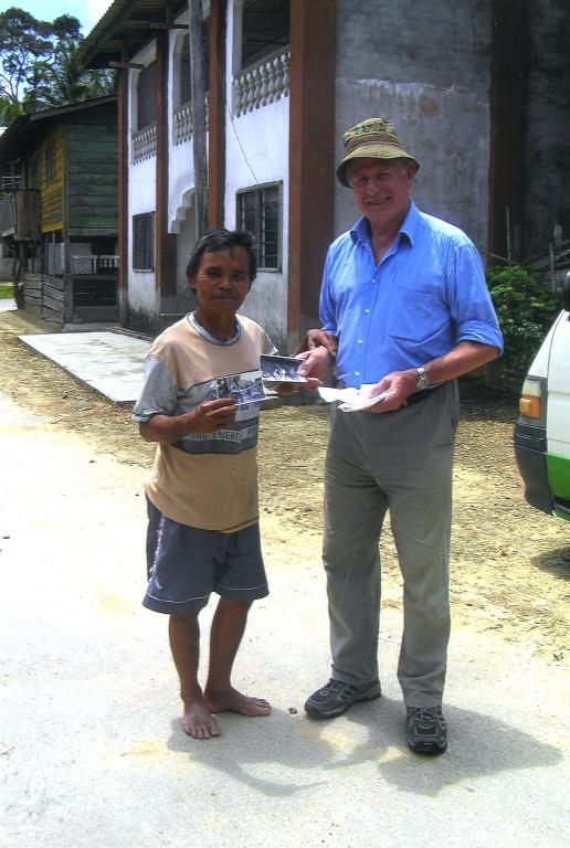 When I joined B Company under Denis Lucy's command in 1964, we were based in Balai Ringin with a forward platoon base in Nibong. Balai Ringin is unrecognisably modern, reached by a continuation of the fine tarmac road. But it was Nibong that I really wanted to see having spent several months on a fortified hill nearby. So off we set initially on the tarmac road, through huge oil palm plantations which have replaced the jungle, and after an hour or so with an increasing number of potholes, we reached Nibong, a kampong near the border that in our day could be reached only by helicopter or foot patrol. It was a strangely emotional feeling to return to a place that immediately felt so familiar, as Alec Shooter or Sean Esteridge, the other two platoon commanders, would no doubt have felt on returning to their platoon base. Remarkably the Headman, Robert [Photo 7] is the son of the Headman when we were based on the hill outside the kampong all those years ago, which only added to the sense of deja vue. When I produced some black and white photographs of David taken in 1964 it caused quite a commotion. He died some 15-20 years ago and cameras were a rarity in his lifetime, so no photograph of him exists. After a very friendly welcome in the new kampong meeting house, we started to walk round the kampong [Photo 8 & 9], a mixture of old and new buildings surrounded by prosperous farmland no longer based on shifting agriculture.